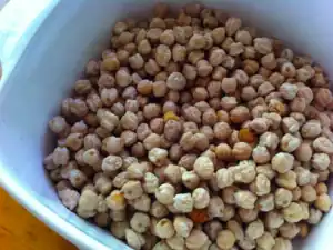 Chickpeas are also known as garbanzo beans or gram. In appearance, they look like wrinkled and peeled hazelnuts.