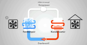 The COP of a heat pump expresses the proportion of electricity (work) in a heat pump that is being converted into desired heat. For example, if a heat pump has a coefficient of.8, then the amount of heat coming from the heat pump is 80% of the energy going into the system; 20% is lost.