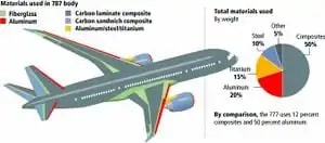 Použití různých materiálů v Boeingu 787 Dreamliner. [1]