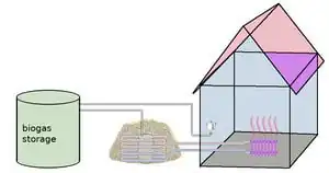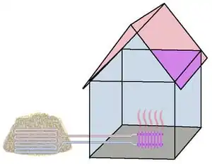 The compost pile heater is one of several types of a compost heater. This one exploits the heat of a big compost heap in the garden to warm up a house. This type requires a big compost heap in the Garden, interveined with a spirally water hose. The water circulation conducts the heat to the building, where it can be fed to a heating circuit.