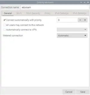 | 5 | Click save and the Raspberry Pi should connect to the internet. To test, open a browser. |
