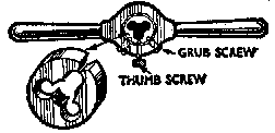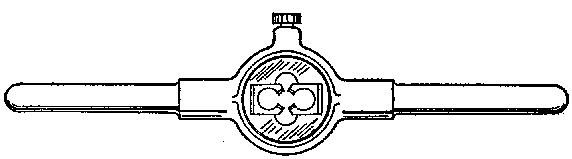 Fig. 5 shows another common type of stock and die suitable for cutting smaller sizes of threads. The stock is designed to take a greater number of dies than the larger type. The circular split die is held in the stock by three small set screws, and some slight adjustment in the diameter of the die is possible by tightening the center screw first. This opens the cut and so increases the effective diameter. This type of stock and dies is very often sold in sets and makes an extremely useful addition to the home workshop.