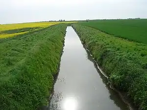 Modern septic tank soakaway drainfields are constructed using trenches filled with a clean washed stone, fed by solid slotted drainage pipe. These trenches are interconnected and have a design similar to an oven grid shelf.