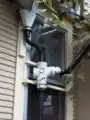- A reduced pressure backflow prevention device. This was required by the city to prevent flow of rainwater into the public system. Cost: $120. This would not be necessary if we used rainwater exclusively. However, Oregon has very dry summers and our cistern is exhausted by July. We currently depend on city water during the summer. The city requires annual inspection of these devices, costing about $30. (See photo below.)