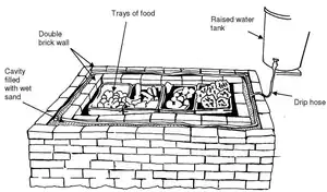 Much of the post-harvest loss of fruits and vegetables in developing countries is due to the lack of proper storage facilities. While refrigerated cool stores are the best method of preserving fruits and vegetables they are expensive to buy and run. Consequently, in developing countries there is an interest in simple low-cost alternatives, many of which depend on evaporative cooling which is simple and does not require any external power supply.