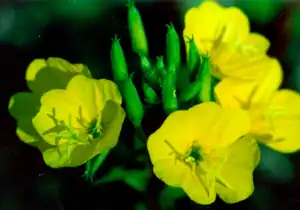 Evening primrose (Oenothera) is a flowering plant often grown in the herb garden. There are about 145 species of evening primrose, native to the Americas.[1]