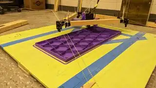 Our hangprinter is built with the same parts and procedure outlined by Tobben in the Hangprinter v4 documentation. Any changes or alterations from the generic build are outlined below in Upgrades and Modifications section.