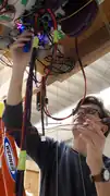Following its initial construction in the summer and fall of 2022, the hangprinter has undergone gradual tuning. However, during the fall/winter of 2023, the lab room which housed the hangprinter was unavailable for constructions and hence the printer had been taken down. Now with the lab open again, the trio of Janik, Rav, and Troy are preparing some repairs and upgrades before once again rehanging the machine.
