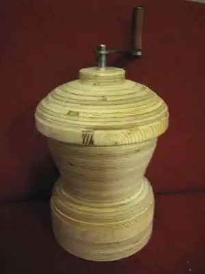 Figure 3: Prototype of Nutsy made out of layered plywood. Nutsy is acorn-shaped and has an easily removable handle. Image Source: Team Shell Shock
