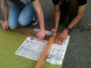 Using a newspaper template, mark on the previously cut fabric to properly fold on the corner of the panel frame. This can be done in multiple ways and is mostly based on the users preference.... (Photo by Cole Humphrey)
