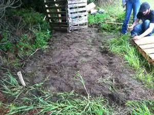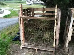 Place another pallet at the bottom of the chamber. This pallet will prevent the compost materials from contacting the ground while also allowing air to enter the compost bin form below.