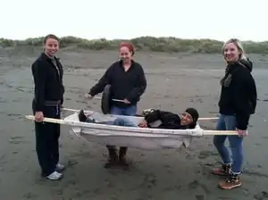 The Stretchbarrow is a device designed to carry beach grass. It was created for the Friends of the Dunes organization as a method of hauling invasive beach grass after it has been removed. The stretcher-wheelbarrow design was created by a group of students from Cal Poly Humboldt's Engr205 Introduction to Design class.