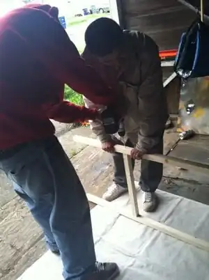 Build the frame using two 8' members and two 19 members. Measure out and mark drill holes. Drill holes for the screws.