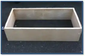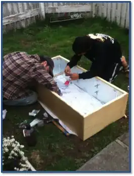 Build the basic dehydrator box using wood glue and screws. Ours is 12"X49"X24". For use at home, any type of wood will do, but for our purposes we used pine due to weight constraints. (Photo by Leabeth Peterson)
