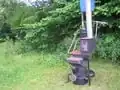 This is a rocket stove type design that uses small pieces of wood or other biomass as the insulation. The heat produced by burning wood in the rocket stove causes the wood/biomass insulation in the surrounding chamber (retort) to undergo pyrolysis. The gases produced by the pyrolysis are fed into the stove and burnt, As air does not flow through the retort the wood held within turns into biochar/charcoal rather than burning to an ash.