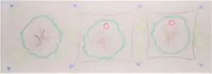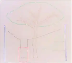 Posts are placed in the ground so that the canopy spread of the tree is encircled. A sheet or net of the same area as the posts is sourced. At the center of the net a hole is cut which matches the diameter of the trunk. A linear cut is made from this central hole to one edge of the net so that it can be fitted around the tree trunk. This cut is roughly stitched or taped back once the net is in situ. As harvest time for individual tree species approaches, the net is suspended from the posts. This is at a level above the shrub layer but below the canopy layer, probably around 1.5m to 2m from ground level.