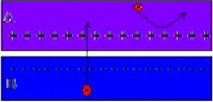 Fig 1: is a diagram that shows the workings of a solar cell's electric field. Note that the section labeled "A" is the n-type junction while the section labeled "B" is the p-type junction. The black arrows in the diagram note the electric field in between the two junctions when external energy is introduced to the system.