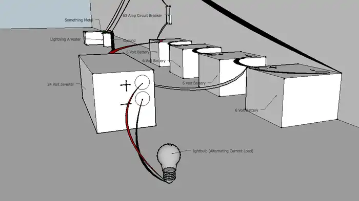 - Add a label for the battery monitor that says to flip the switch to the grid (to the right) once it reads a certain voltage, to allow the batteries to recharge.