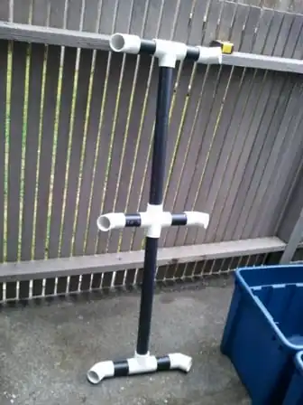 Attach a 45* PVC joint to each 5" PVC pipe. Use two T-Joints and one four-way joint with two 22" PVC pipes to create the structure pictured to the left. |