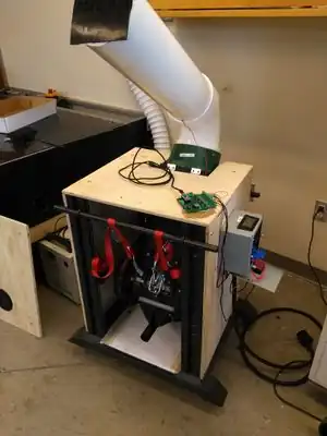 This project was developed mainly by Walker Nelson Peter Gorecki, who finished their capstone design project through Michigan Technological University in 2016. Since its publishing, the Granulator design and assembly itself has not changed, but information regarding the power consumption while granulating different thermoplastics has been researched.