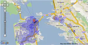 Fig 1: Example of Graphserver in use as part of a beta test of transit accessibility in the http://www.walkscore.com platform.
