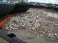 Composition of marine garbage/plastics varies from area to area. Although a general trend seems to be that 80% of the marine trash comes from land, storms wash garbage off highways and city streets, down streams and rivers, and out to sea (there is also direct dumping of trash into water bodies). The rest come from ships, cruise lines that illegally dump their waste, oil platforms, or fishing boats. "In addition, thousands of cargo containers fall overboard in stormy seas each year, spilling their contents. One ship heading from Los Angeles to Tacoma, Wash., disgorged 33,000 blue-and-white Nike basketball shoes in 2002. Other loads lost at sea include 34,000 hockey gloves and 29,000 yellow rubber ducks and other bathtub toys."