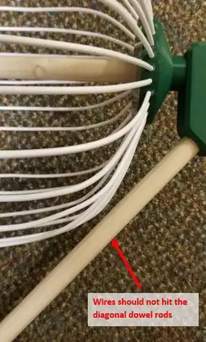 - Wires should be dry fit and tested to see if the hit the diagonal dowel rods. If the wires hit, re-bend them or shorten their length. (image bel