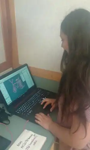 One of the students, Lilly Meyers, is creating a prototype on her personal computer. Mckinleyville High School Spring 2017.