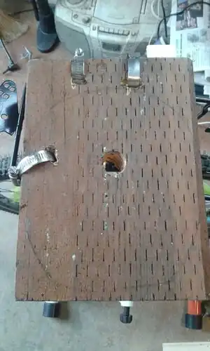 This is the wood panel used to connect the base of the blender to the bike rack over the rear tire.