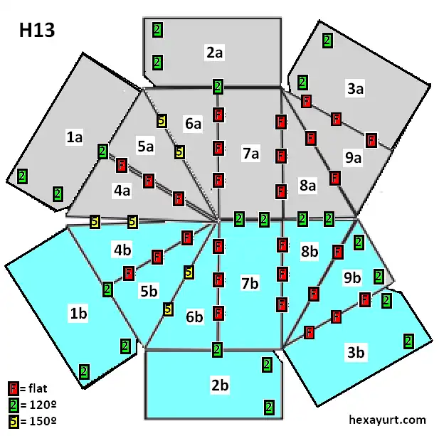 - Vinay Gupta invented the basic shape in 2003. The H13 was designed by Scott Davis and Dylan Toymaker (design published in November 2010). The H13 adds one panel to the “classic” H12 hexayurt, but that one extra sheet of plywood gets an 8′ roof line and 2-3 times the walkable space inside the hexayurt.