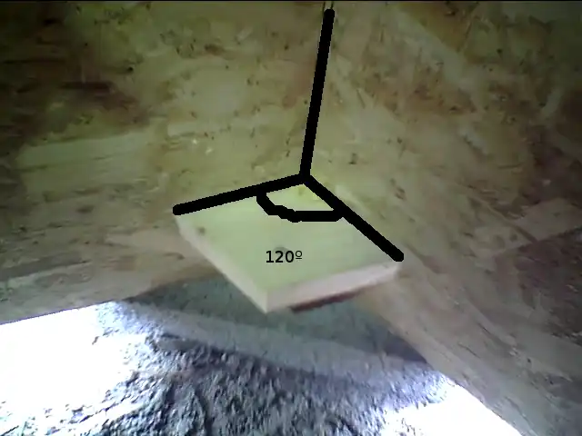 Start with 2-inch by 4-inch wood and cut 12 blocks. Each of the blocks has a 120º angle. There will be 2 blocks in each corner, one near the ground and the other near the roof.