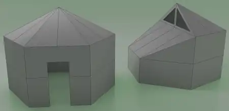 Prior to rendering it on the computer, the designer played around with a few H13 varients using card. He produced a card model that started out as a H13, but he simply wanted more height at the front, so I took that up so that a full edge was full height (rather than a single vertex).