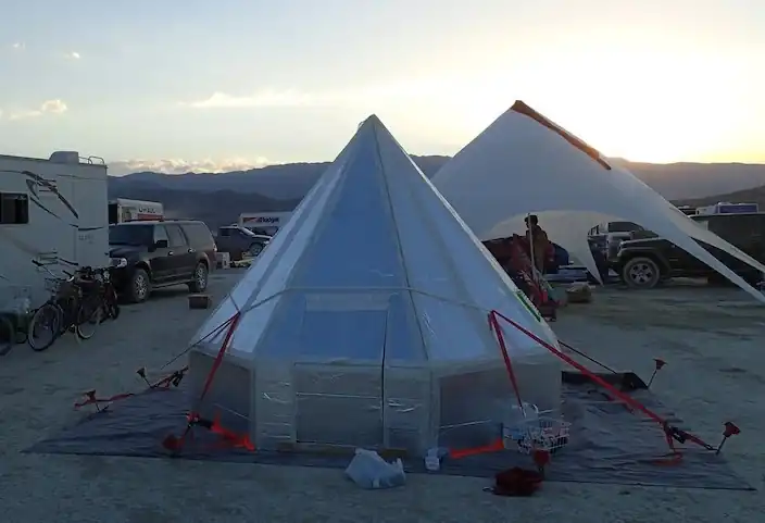 The Octayurt is big enough for two people, including their gear, and very comfortably sleeps up to three people.