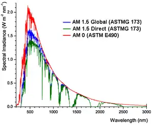 - 1 2 3 Honsberg C., Bowden S., Photovoltaics DROM, Properties of Sunlight, http://pvcdrom.pveducation.org/index