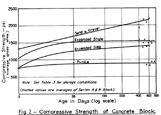 Joseph J. Shideler, in his Investigation of moisture-volume stability of concrete masonry units with the Portland cement association, they stated "Concrete mixing, molding and curing procedures were established that produced compressive strengths at 72 hours after molding… The molded block were immediately place in a kiln and subjected to an 18-hour curing cycle."[2]