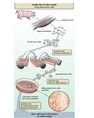 - ↑ "In-Vitro Meat – Pros and Cons." Petri Dish to Plate. N.p., 16 Nov 2009. Web. 30 Mar 2014. <http://petridishtoplate.wordpress.com/2009/11/16/in-vitro-meat-pros-and-cons/>.