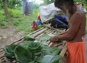 Making of Banana Leaf Plates which Replace Plastic as a Climate Solution. August 2011. Attribution: Sumita Roy Dutta
