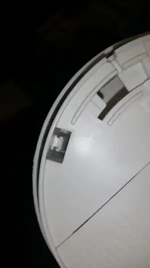 Fig.5:Smoke Alarm electronics with Sound output pins highlighted- Place 9 Volt Battery into smoke alarm.