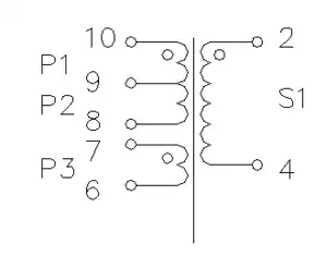 PRIMARY INDUCTANCE: P1= 33.5 P2= 44.5 P3= 3.7uH