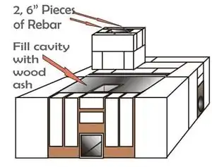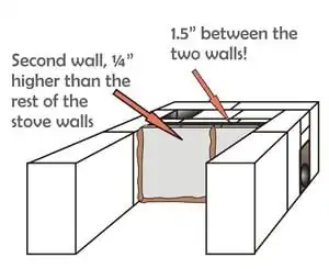 Fill the large cavity left in the stove with dry, sifted wood ash. Fill ash to the height of all of the walls - ncluding taller walls.
