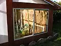 The first window we put in the greenhouse is the one on the east side.(Fig 9) This window lets in a lot of morning sun and helps take the night time chill off. All of the windows are second hand and recycled that we bought locally. A problem we had with the first window is that it is made to go vertical not horizontal, the way we installed it. Because of this there are springs in the window to help it go up and in this case, being on its side, the springs help it open but it is very hard to close. To fix this we removed the springs and now it slides easily in both directions. Another problem we discovered is that the drains for the window are now on the side instead of the bottom where they are supposed to be. This has lead to a leak right in the center of the window which could eventually lead to rot. On the south side we installed two long windows on the bottom. These will not let in much light but they will let in a little and are mostly for aesthetics.(Fig 10)