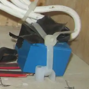 The generator is not built to stand up to rain. To protect it from the rain, a plastic box was built that covers the generator and still lets the chain run to it.