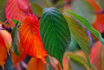 Deciduous leaves change colour in the autumn/fall seasons, to shades of red, orange, yellows and browns.