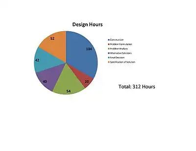 The chart to the right shows the breakdown of design hours that went into constructing the Sprouting Education School Garden. A majority of the hours were spent in the construction phase.