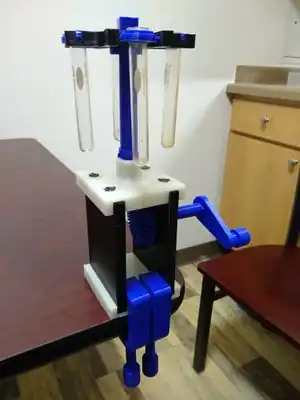 - Bevel gears 2. Clips 3. Frames 4. Handle 5. Top plate 6. Test tubes