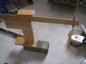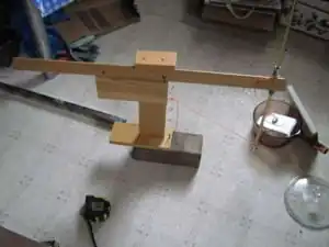 You should place the mathematician on the middle of the square of you solar cooker that you want to be bottom square. I then put a couple of marks on either side of the dark piece of wood in case it slips. I then put a little dot on the centres of all the other squares. 11 dots in my case. Next you must set the length of your string line.