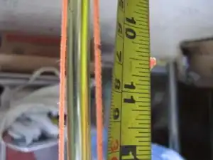 Remove the string from the hook and let the curtain rod drop till it touches the floor or foil. if you want a 10 inch high focal point, place your tape measure on the floor and mark the taut string at 10 inch height. Attach it to the 10 inch hook at that mark. For 12 inches, you have a mark at the 12 inch height and attach it to the 12 inch hook and so forth.