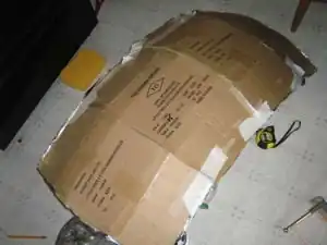 Each segment was 1 ft wide so I put 1ft kitchen foil across each segment and glued it. The glue mix was half Elmers glue and half water, mixed well and smeared lightly across the cardboard. I used a sponge to smooth on the foil. You start in the middle of a foil piece and sponge to the edges. It works well!
