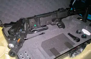 A multi-purpose weapon from Israel. It can be mounted with various weapons (e.g. 9mm handgun or 40mm grenade launcher) and allows the wielder to look and fire around corners. Its barrel can be horizontally rotated by 60° in both directions. A camera and display allow to look around corners and fire precisely without exposure to counterattacks.