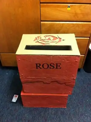 Students at Cal Poly Humboldt use egg paint to create this logo for the interior wall of the Campus Center for Appropriate Technology.[12]